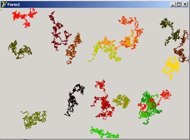 Проект 10. Броуновское (хаотичное) движение Nточек (пикселей), оставляющих след (траекторию).