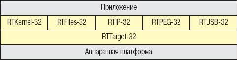 является основой RTOS - 32 и должен присутствовать во всех приложениях, разработанных на ее базе. Он включает все средства, необходимые для запуска 32-разрядных приложений во встроенной системе. RTTarget - 32 может выполнять одно 32-разрядное приложение, построенное Win32 совместимым компилятором. Он имеет загрузчик, инициализирующий аппаратуру и запускающий приложение. RTTarget-32 также поддерживает наборвызовов API Win32, позволяющий запускать программы, разработанные для консольного режима Windows NT. Этой эмуляции вполне достаточно для загрузки и выполнения программ, созданных обычными Win32 совместимыми компиляторами, без изменений или же с минимальными доработками. Таким образом,