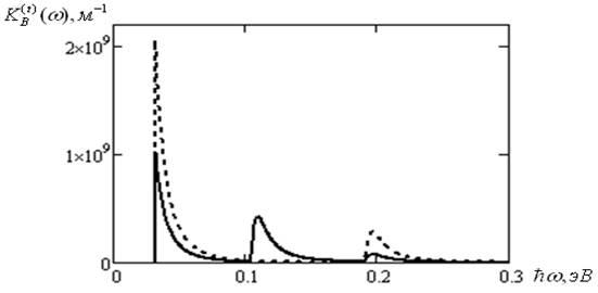 Рисунок 6 – Спектральная зависимость коэффициента примесного поглощения с учетом лоренцева уширения уровней энергии электрона