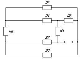 В принципиальной схеме резисторы , и соединены треугольником. Заменим это соединение эквивалентной звездой , , . Имеем: