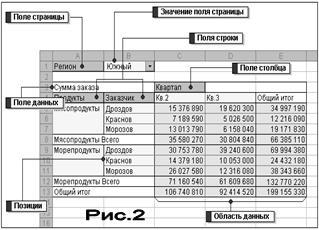 Прежде чем продолжить эту работу, я думаю, что будет не лишним рассказать из каких все-таки элементов состоят сводные таблицы, и для этого рассмотрим пример на рисунке 2.