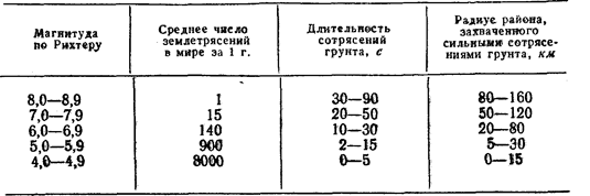Некоторые данные о землетрясениях приведены в таблице 1.