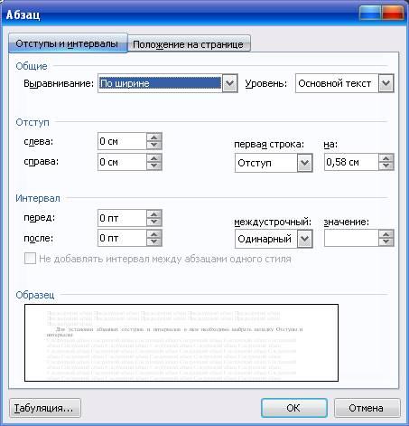Для установки абзацных отступов и интервалов в нем необходимо выбрать вкладку Отступы и интервалы: