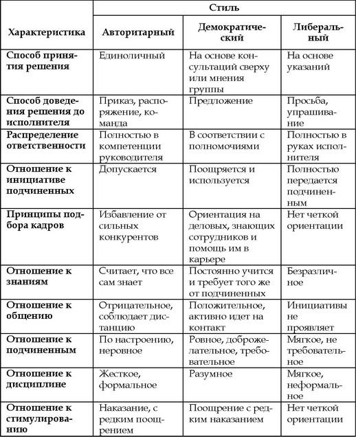3. Характеристика стилей управления (руководства)