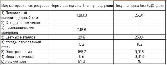 Стоимость материальных ресурсов на одну тонну металлопроката определяется как норма расхода, умноженная на цену без НДС.