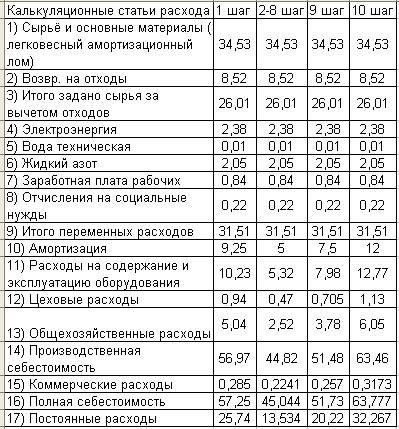 Формирование калькуляции себестоимости одной тонны дроблёного металлопроката