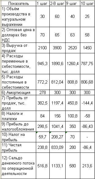 Данные Таблицы 1 и Таблицы 6 позволяют сформировать операционные и инвестиционные денежные потоки по шагам реализации инвестиционного проекта.