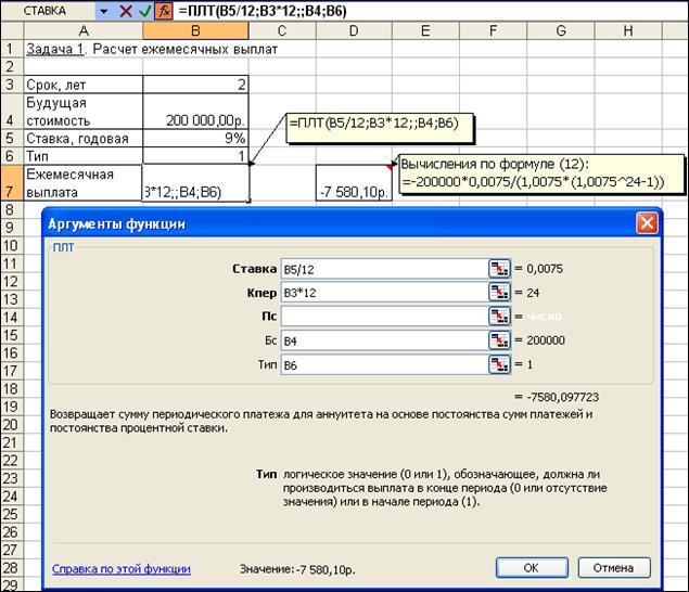 Значение графы 9 рассчитывается с помощью финансовой функции ПЛТ.