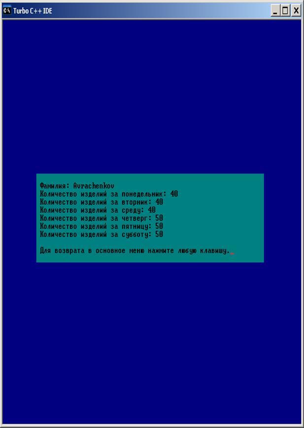 cout<<"3 - общее колличество изделий на неделю";