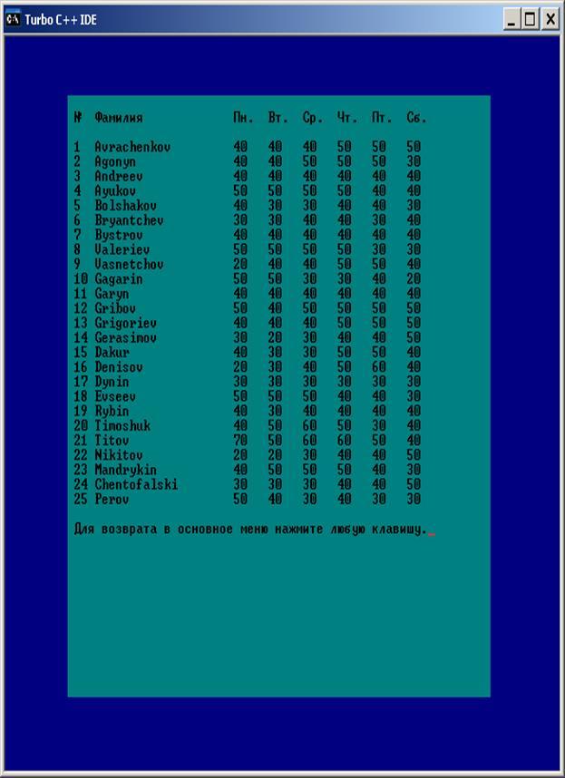Все полученные результаты отобразить на экране.