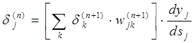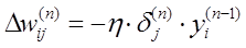 для выходного слоя по формуле: