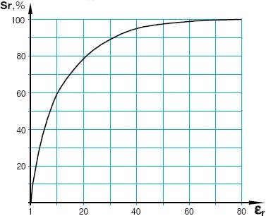 Рис 2.9.Зависимость реального расстояния срабатывания Sr от диэлектрической проницаемости материала объекта er
