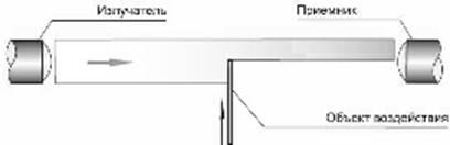 характеризуется тем, что излучатель и приемник размещены в отдельных корпусах. Прямой оптический луч идет от излучателя к приемнику и может быть перекрыт объектом воздействия. Излучатель и приемник могут получать напряжение питания от различных источников питания. Индикатор излучателя сигнализирует о подаче напряжения питания. Индикатор приемника сигнализирует о срабатывании приемника. Элемент коммутации расположен в приемнике.