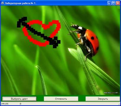 Задание:Создать программу для закрашивания рисунка квадратами 20х20 пикселей с возможностью задания цвета из палитры цветов.