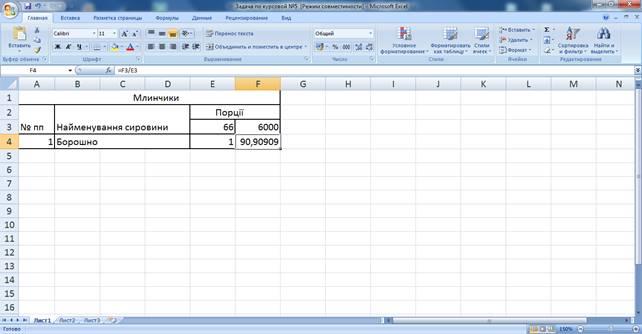 Знаходимо рецепт на одну порцію і множимо на 200, так само як і в задачі №1 за аналогічною формулою (див. рис. 2.22;2.23;2.24).