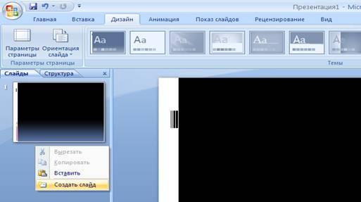 Шаблони оформлення — це заздалегідь задані розмітки і оформлення презентацій, в які розробники вставляють свій матеріал. Нова презентація дозволяє створити презентацію за допомогою порожніх слайдів, вибраних з області Розмітка слайду. При необхідності додати новий слайд виберіть команду Створити слайд меню Вставка.