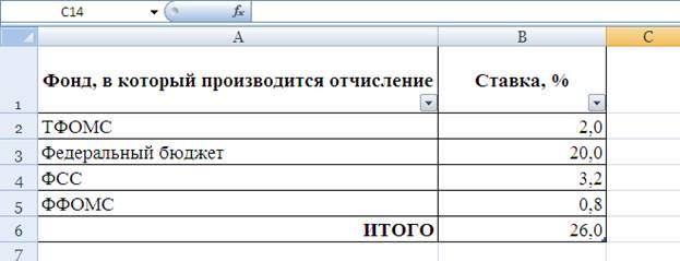 Заполнить таблицу процентных ставок отчислений исходными данными (рис. 2.1.).