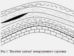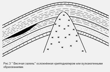 Наряду с первым видом «висячей залежи» (Рис.1) существуют и другие виды, такие как залежи, осложнённые разрывным нарушением (Рис.2) и «висячих залежей», осложнённых криптодиапиром или вулканогенными образованиями. (Рис.3)