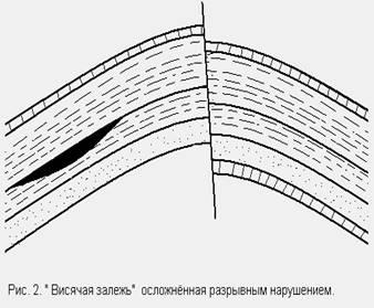 В ряде случаев известны скопления нефти на крыльях или в периклинальных частях структур (при обводнённости их сводовых частей), так называемые висячие залежи