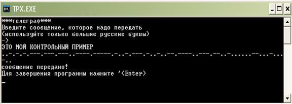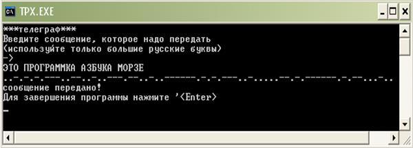 Для возвращения к программе мы нажимаем Enter. Чтобы просмотреть результат набранного сообщения используется комбинация Alt + F5. Для полного выхода из программы нажимаем Alt+ X.