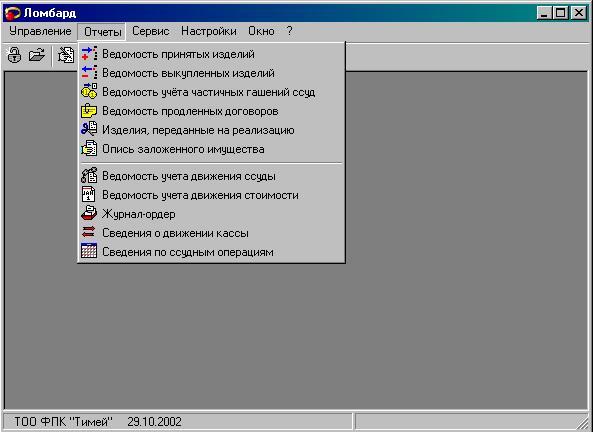 ГЛАВА 3 АВТОМАТИЗАЦИЯ УЧЕТА ЗАЛОГОВЫХ ОПЕРАЦИЙ………………………………………………………………….….34