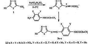 Шесть новых моноазо красителей были получены диазотированием 2-амино-5-меркапто – 1,3,4-тиадиазола 1