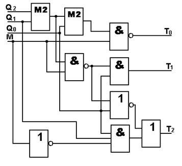 Логічна схема комбінаційної частини ЦА, що формує необхідні функції збудження тригерів, подана на рис. 5.