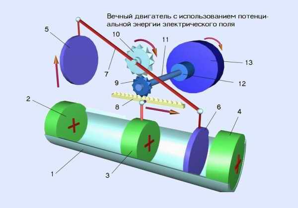 Удивительно то, что посредством потенциальной энергии электрического поля можно одновременно получать оба эти вида энергии (и кинетическую энергию движения, например, энергию вращения, и одновременно электроэнергию). Регулирование величины вырабатываемой кинетической энергии и электроэнергии в нагрузке из потенциальной энергии электрического поля достигают изменением величины напряженности исходного или наведенного электрического поля или величины электрического заряда. Рассмотрим такое устройство.