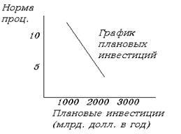 Экономическая система представляет много возможных вариантов для осуществления инвестиций, которые различаются по степени выгодности. При прочих равных условиях уменьшение процентных ставок ведёт к повышению уровня плановых инвестиций. Существует график плановых инвестиций, который иллюстрирует эту тенденцию: