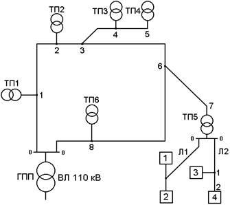 Схема сети напряжением 10 кВ для питания населенного пункта приведена на рисунке 1.1.