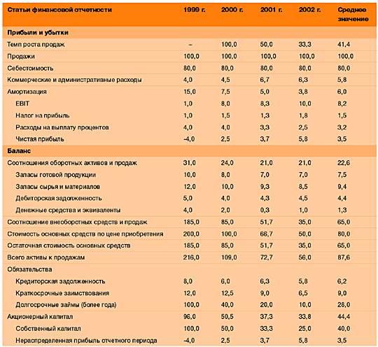 Таблица 5 – Финансовая отчетность (в процентах к объему продаж, %)
