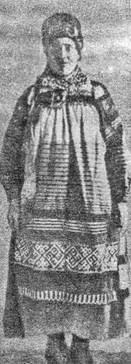 Одежда девочки одинакова с одеждой взрослой девушки. «Чехры» (рис. 6) начинают носить с 14—15 лет. Лет с 12 девочки имеют собственный сундучок, где лежит все их платье и украшения («шубки», «чехры, поднизь, нарядные карманчики — «гаманы», надеваемые под «занавеску» на пояске, подпояски и прочие). Из этих вещей по обычаю, мать ничего не может ни отдать на сторону, ни продать без согласия дочери.