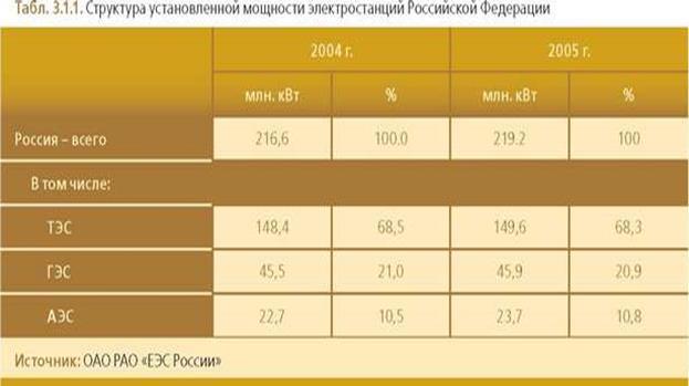 Сегодня мощность всех электростанций России составляет около 212,8 млн. кВт. В последние годы произошли огромные организационные изменения в энергетике. Создана акционерная компания РАО «ЕЭС России», управляемая советом директоров и осуществляющая производство, распределение и экспорт электроэнергии. Это крупнейшее в мире централизованно управляемое энергетическое объединение. Фактически в России сохранилась монополия на производство электроэнергии.