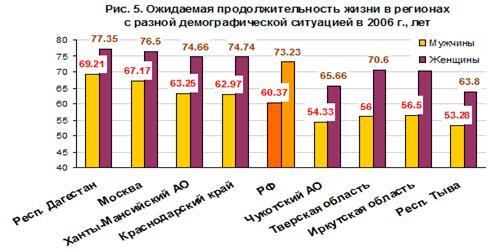 Состояние здоровья и уровень смертности населения отражаются на показателях ожидаемой продолжительности жизни населения страны, которая в настоящее время составляет 65,9 лет (1992 год - 68,8 лет). Ожидаемая продолжительность жизни мужчин на 12 лет ниже, чем у женщин.