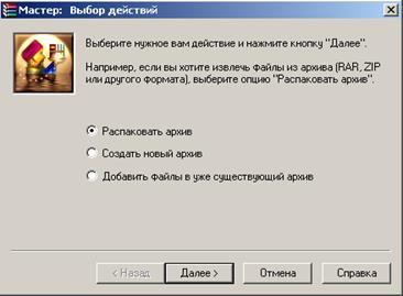 Рис.1.1 Первый диалог Мастер: Выбор действий