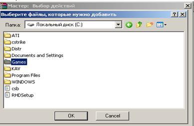 - Выберете в рабочем поле диалога папку или файл, который будете упаковывать, - выделите их. Щелкните мышью по кнопке ОК