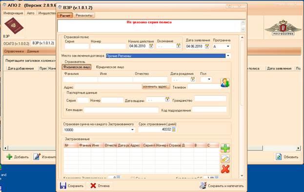 АПО2 (Альтернативная программное обеспеченье версии 2) оно используется в малых офисах продаж не имеющих АРМ страховщика, в этой программе так же происходит ввод данных о клиенте о страхуемом имуществе, вся информация о сделке. Но данные передаются сначало в дирекцию по региону а уже из неё непосредственно в москву.