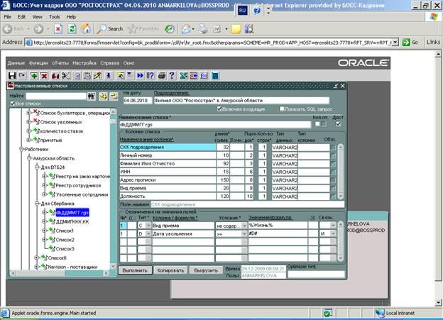 · Ведение всей учетной работы по персоналу, используя автоматизированное выполнение операций по приему, перемещению, увольнению работников, по подготовке и учету приказов, а также по формированию разнообразных списков и отчетных документов.