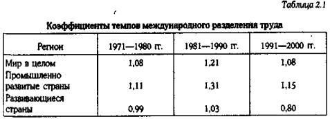 При этом время следует отметить ряд особенностей этого процесса. Скорость структурных изменений в мировом производстве обработанных товаров возрастает, но это обеспечивается в основном развитыми странами. Одновременно увеличивается разрыв между перемещением капитала и скоростью структурных изменений, вызываемых научно-техническим прогрессом, и малым перемещением рабочей силы. Это создает одну из основных проблем в структурной перестройке мировой обрабатывающей промышленности, содействуя сохранению резких внутриотраслевых различий между развитыми и периферийными странами.