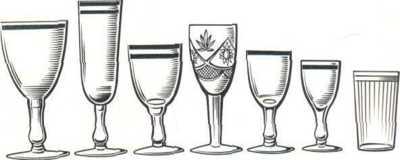 К столу кроме еды традиционно подают различные напитки. Пьют их, как правило, из стеклянной (хрустальной) посуды - рюмок, фужеров, бокалов и стопок (рис. 7).
