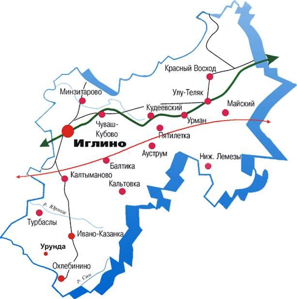 Карта Иглинского района.