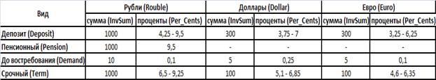 Вклад – денежные средства, внесенные физическим или юридическим лицом в финансовое учреждение. Таким финансовым учреждением в условиях рассматриваемой предметной области является Сбербанк.