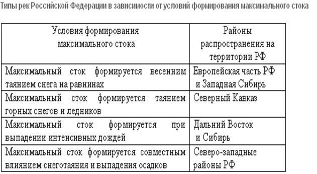 воды./3/в таблице 3 приведены типы рек РФ.