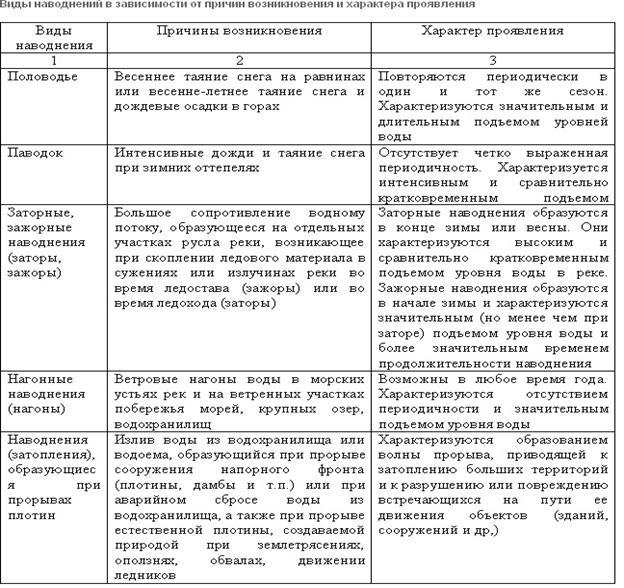 Виды наводнений вследствие возникновения и характера их проявления