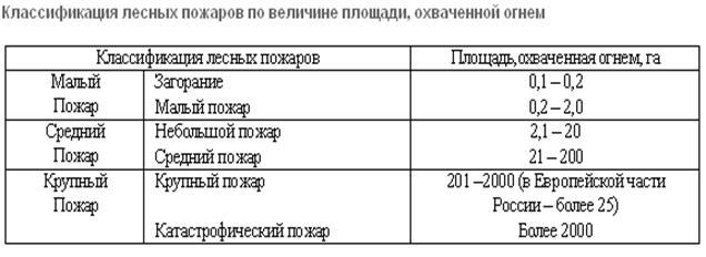 Таблица 7. Классификация лесных пожаров по площади.