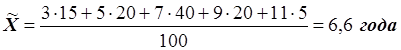где - значение середины интервала для каждого срока службы;