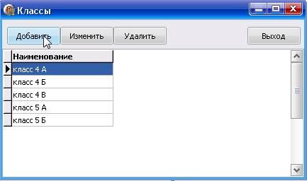 Следующая форма появляется при выборе в меню пункта «Учителя»: