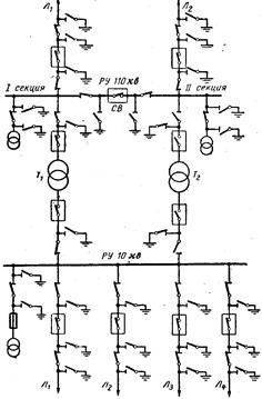автоматически отключится от действия защиты. Включение и отключение трансформатора при этом не влияют на работу электроприемников, питающихся от РУ 10 кв через трансформатор Т2
