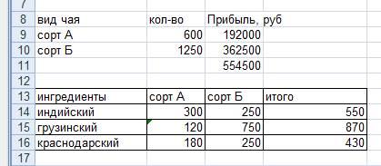 Целевая функция- общая сумма прибыли от продажи искомого количества чая сортов А И Б.