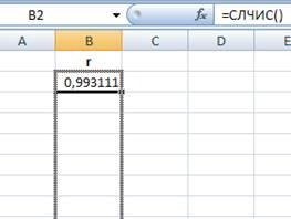 , генерируем случайную величину в ячейке В2 с помощью мастера функций: